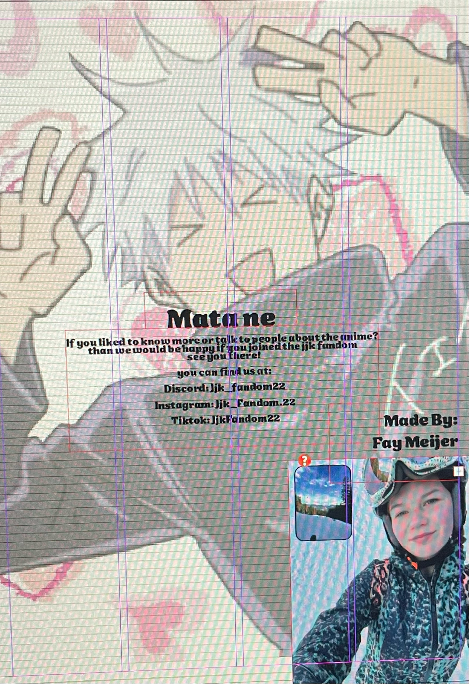 Ik ben nu bezig met met een folder maken, je mag zelf kiezen waar het over gaat ik doe het over de anime Jujutsu Kaisen. Wat je tot nu ziet is de achterkant van de folder. Het gaat over waar het natuurlijk over gaat en als mensen interessen hebben of ze kennen het al en willen dit lezen dat ze ook mee kunnen doen aan een fans comunnity.