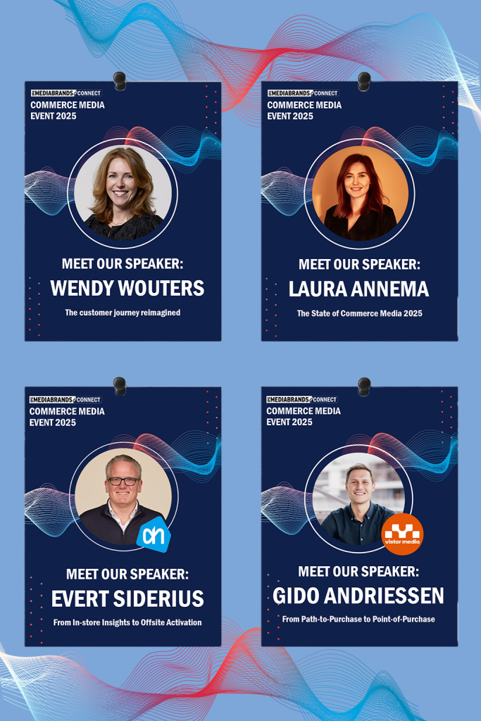 Dit is een speaker post voor het Commerce Media event. De layout past bij het hele event en is op de socials gezet om de sprekers te aankondigen.