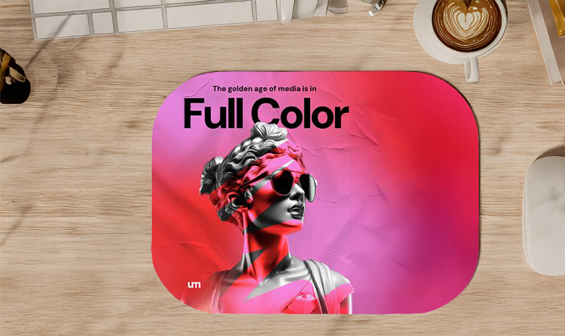 Door UM werd ik gevraagd om leuke kerst cadeautjes te verzinnen die zij naar klanten kunnen sturen. Een daarvan is deze muismat die heb ik op een Mockup gezet zodat zij konden zien hoe het er eruit zou zien. Helaas is deze niet gekozen maar het Bambooboek die ik ook heb gemaakt met hun assets ( bekijk de rechter afbeelding voor de kaft).